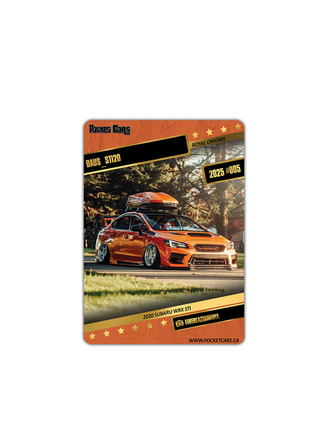- Sold out2020 SUBARU WRX STI - DAUS_STI20 - #005 - ROYAL ORIGINS Regular price From $7.00 CADUnit price /Unavailable