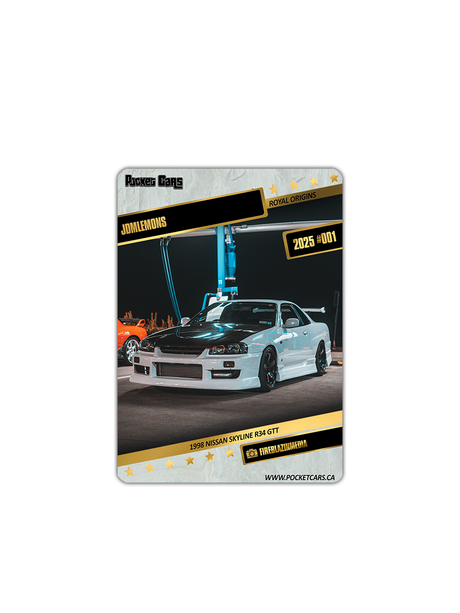- Sold out1998 NISSAN SKYLINE R34 GTT - JDMLEMONS - #001 - ROYAL ORIGINS Regular price From $7.00 CADUnit price /Unavailable